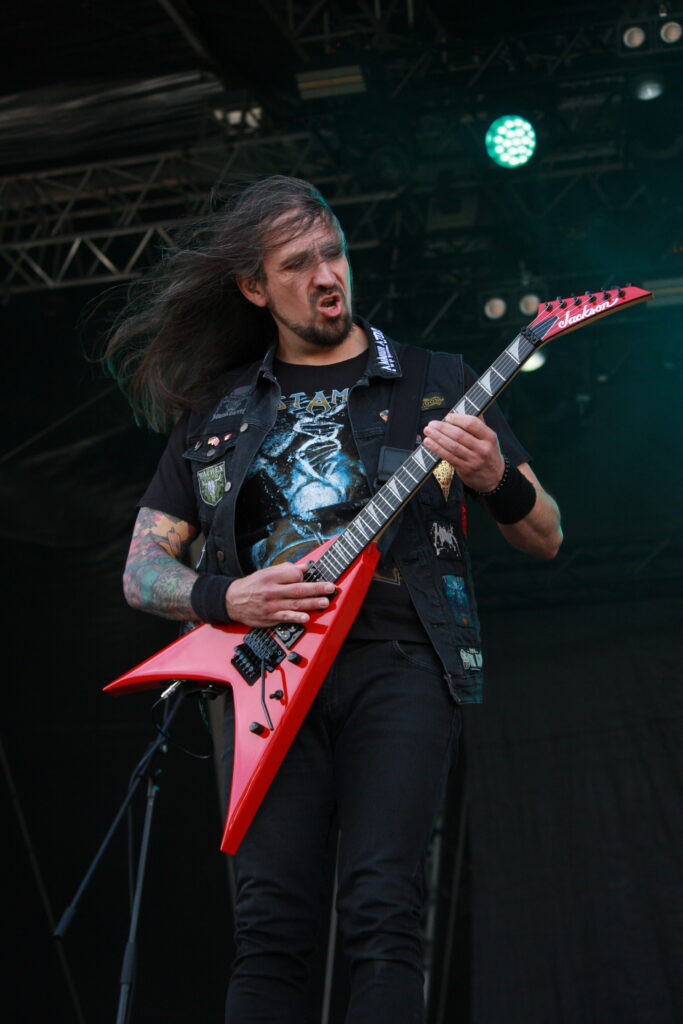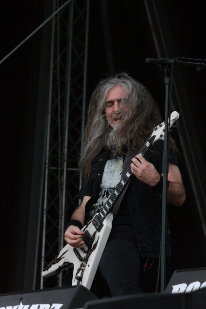 Zunächst steigen BENEDICTION auf die Bühne. DeathMetal vom Feinsten für alle, die es Oldschool mögen. Die Sonne knallt immer noch vom Himmel, und Frontmann Dave Ingram rät, man solle das Risiko eines Sonnenbrands nicht unterschätzen. Einzelnen Damen bietet er da gerne seine Dienste an, es solle bloß niemand seiner Frau erzählen. Natürlich ist das nicht wirklich ernst gemeint.