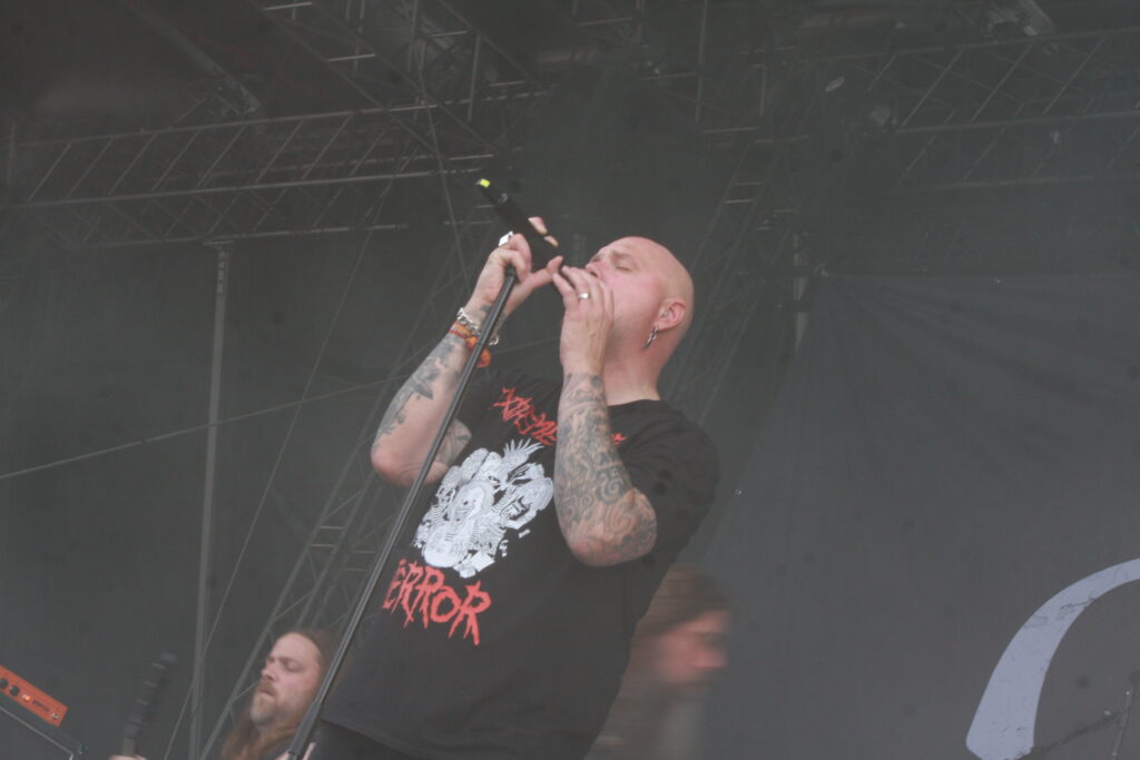Denn nun, bei knallender Sonne, stehen UNEARTH auf dem Plan. Die Metalcore-Band ist schon seit einem guten Vierteljahrhundert im Geschäft, und obwohl sie den Sprung ganz nach oben irgendwie immer noch verpasst haben, haben sie zwei unglaublich fähige Gitarristen an Bord, wovon sich alle Zuschauer bei alten und neuen Hits überzeugen können. Die Spielfreude der Band kann sich ebenfalls sehen lassen. Bislang eines meiner persönlichen Highlights des Festivals.