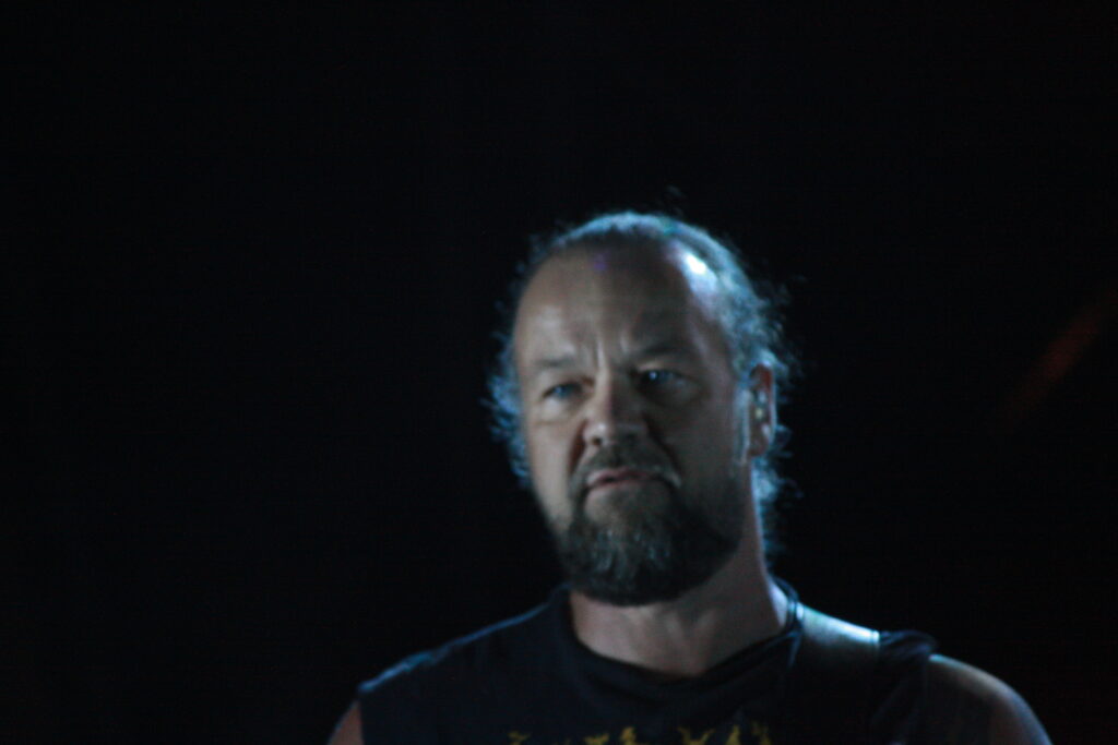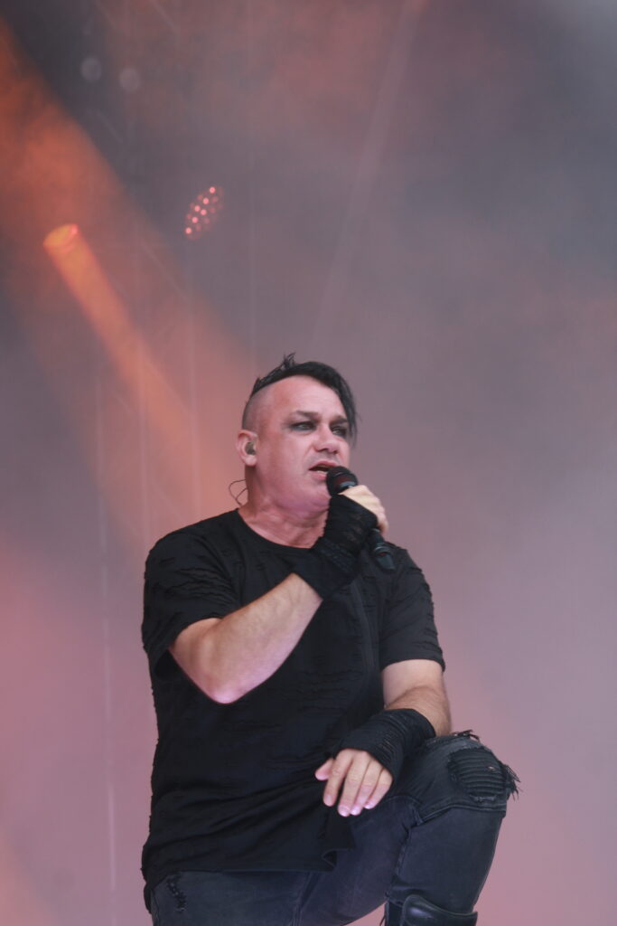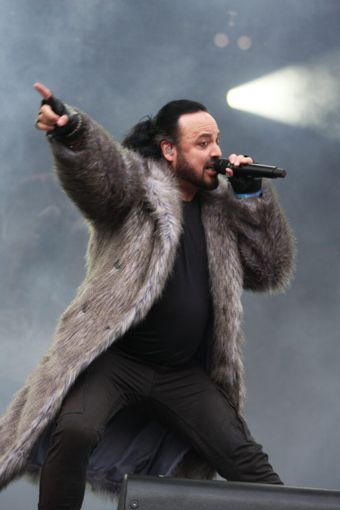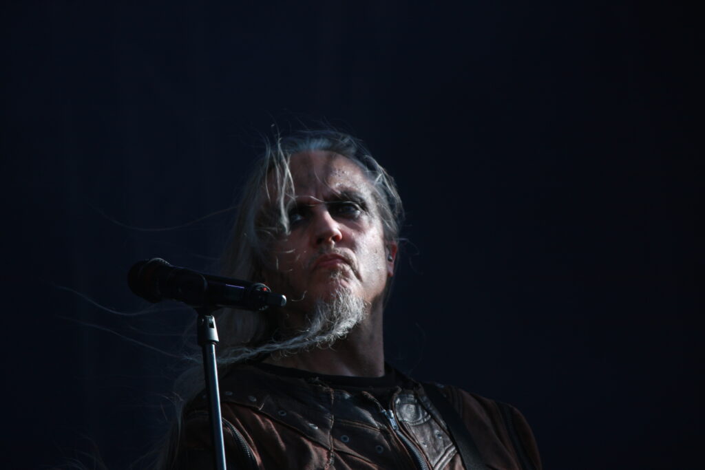 Als nächstes dann OOMPH!, auf die ich sehr gespannt bin. Der Schulz am Mikrofon ist kein Unbekannter, hat er doch lange Zeit bei Unzucht als Frontmann agiert, nun also als Ersatz für Dero bei dem Urgestein der NDH-Welle. Unzucht-Fans nehmen ihm den Wechsel weiterhin übel, aber umso erfreuter sind die OOMPH!-Fans, dass sich jemand gefunden hat, der die Position am Mikrofon so souverän und überzeugend übernehmen kann. Mit einer guten Mischung aus älteren und neuen Songs (wenn auch für meinen Geschmack zu wenig ganz alte) schließt die Band mit ihrem über-Hit „Augen auf“ das Set. Zeit, dass einer der ganz großen Frontmänner des Metal übernimmt.