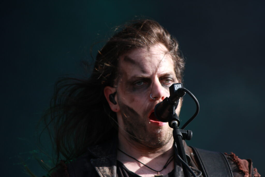 PAIN sind die erste Band, die ich als fehlgebucht empfinde, denn es ist eigentlich noch viel zu früh am Tag für so ein Geschütz. Peter Tägtgren liefert voll ab (auch er wird am Samstag noch einmal mit Hypocrisy auftreten), im Hintergrund läuft auf einer Leinwand visuelle Unterhaltung passend zu den Songs (das klassische Backdrop-Banner hat mehr und mehr ausgesorgt, wie es scheint), und auch die Kostümierung wechselt mehrfach während des Sets. Spätestens bei „Shut your mouth“ ist das Publikum ganz aus dem Häuschen.