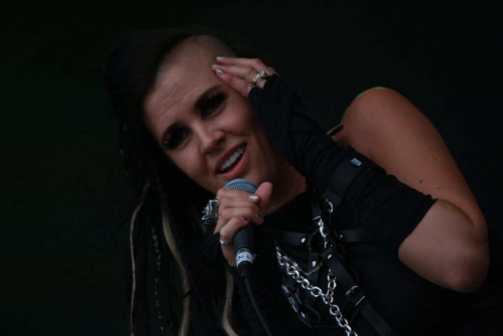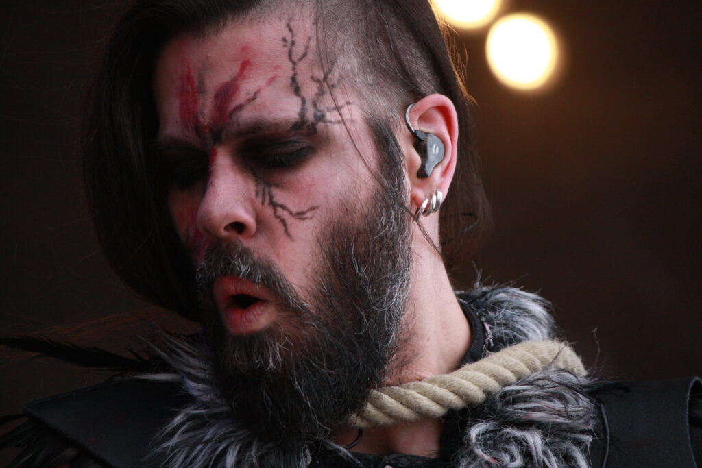 VARG „entern“ die Bühne. Viking Death Metal, deutsche Texte, mit neuer Sängerin im Gepäck, Kunstblut in die Gesichter geschmiert, wo eben noch Party und Rock angesagt war, wird es nun wieder düster und ernst. Die Band darf sich darüber freuen, dass es langsam wieder voller wird.