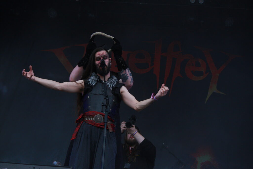 Mit VOGELFREY kommen aber erst einmal die Mittelalter-Fans voll auf ihre Kosten. Hier wird wieder kräftig des Harzers Tanzbein gefordert, und auch wenn man mit der Band nicht regelmäßig Kontakt hat, kann man sich dem Sog der Band nur schwer entziehen und macht fast schon von selbst mit.