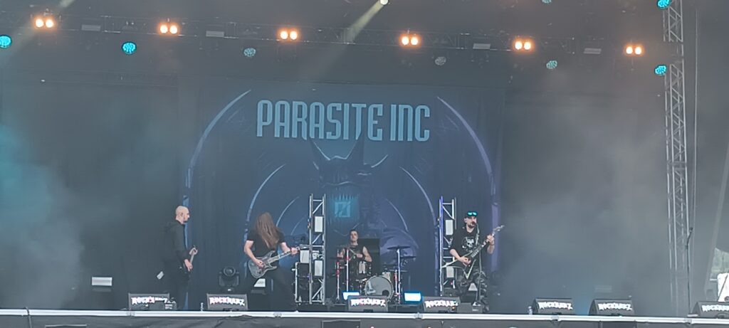 Nebenan geht es direkt heftig, wenn auch etwas ruhiger mit PARASITE INC. weiter. Mit einem futuristisch wirkenden Bühnendesign und ebenfalls fast schon steril klingenden Gitarren hinterlässt die Band einen guten Eindruck, der vermutlich mit einer anderen Band davor deutlich krachender gewirkt hätte.